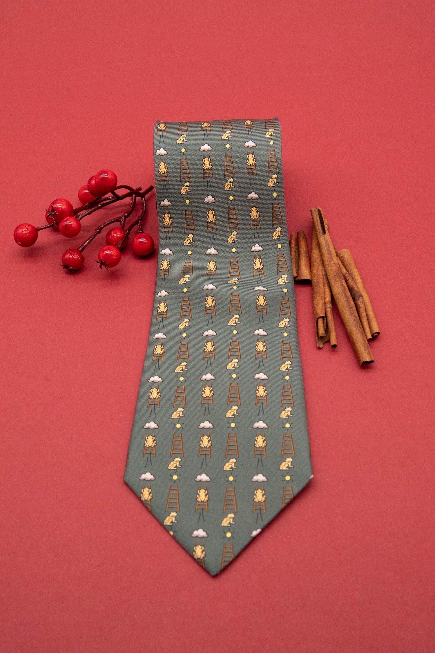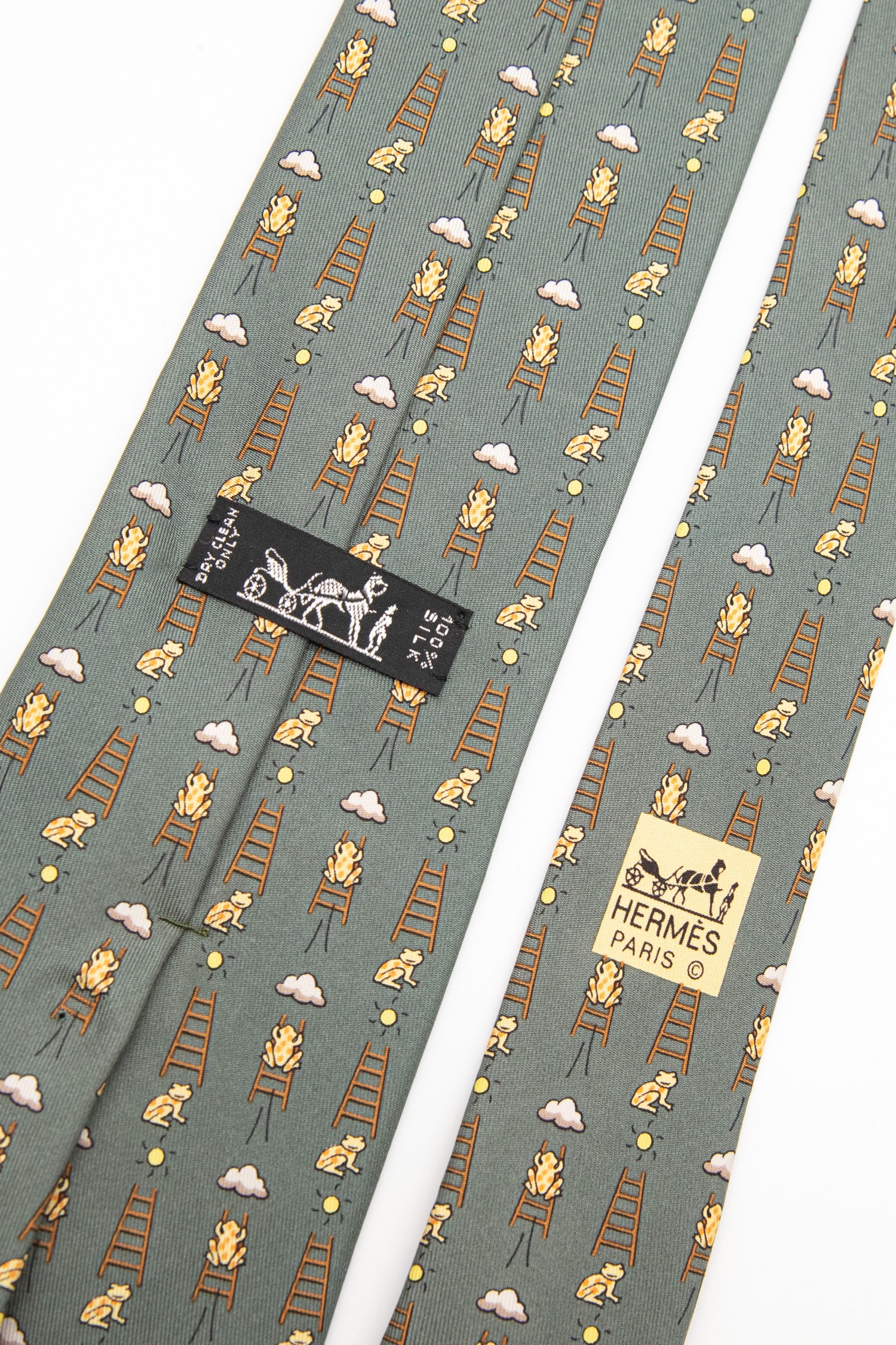 Hermès Krawatte mit Wetterfrosch-Motiv in Khaki