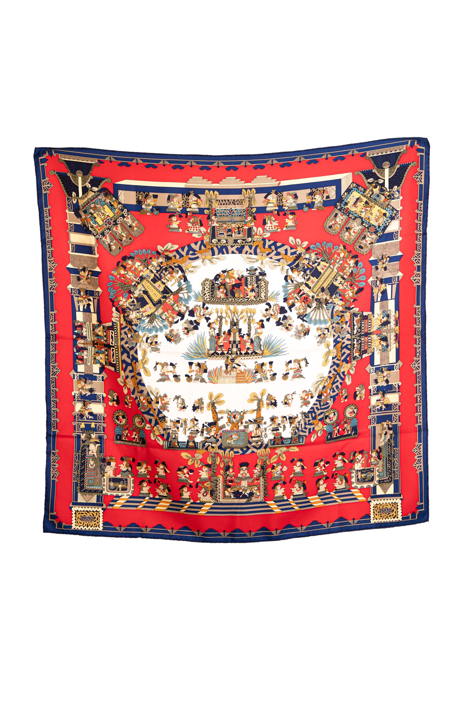 Hermès „Astres et Soleils“ Seidentuch in Rot und Blau
