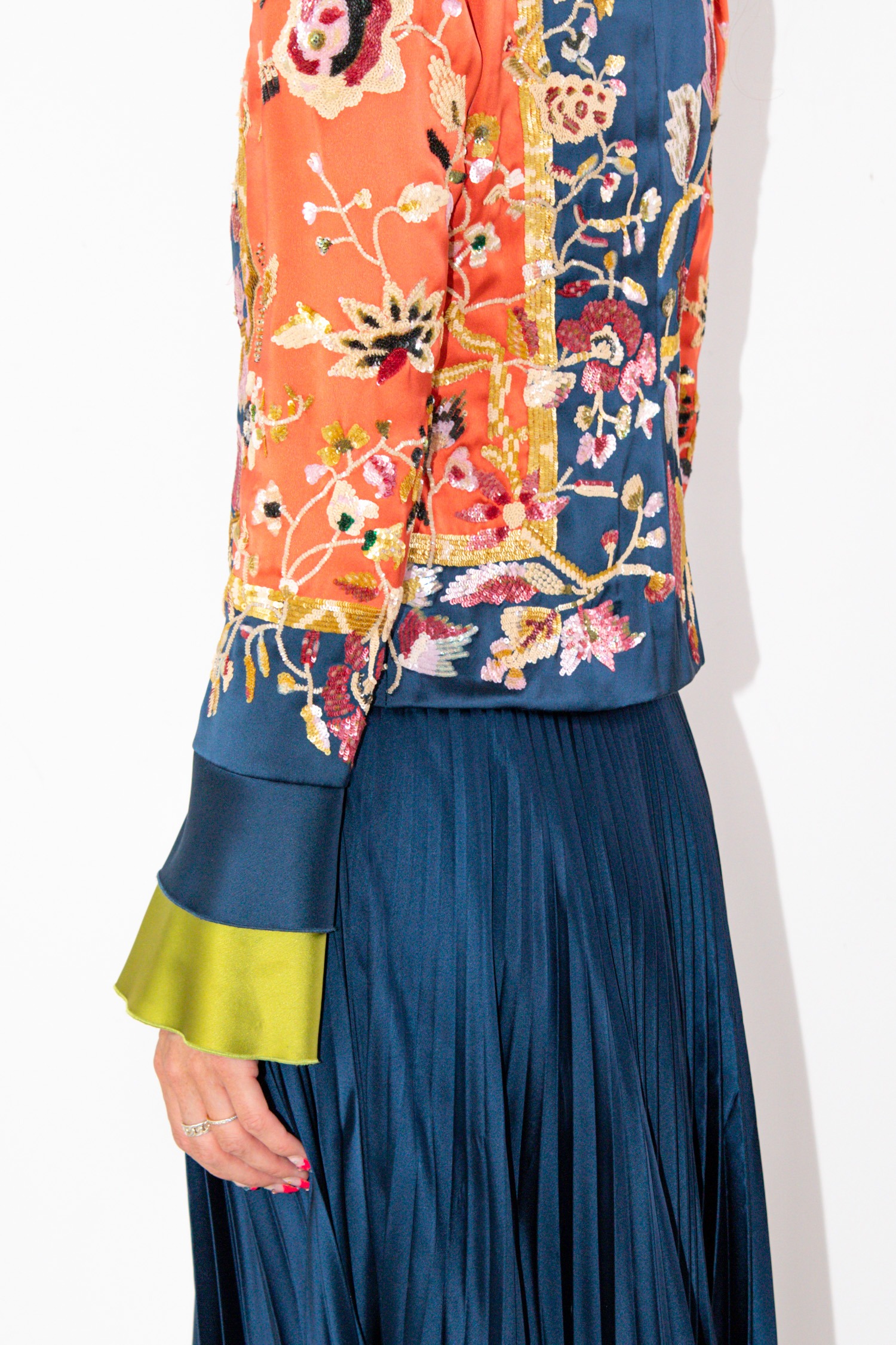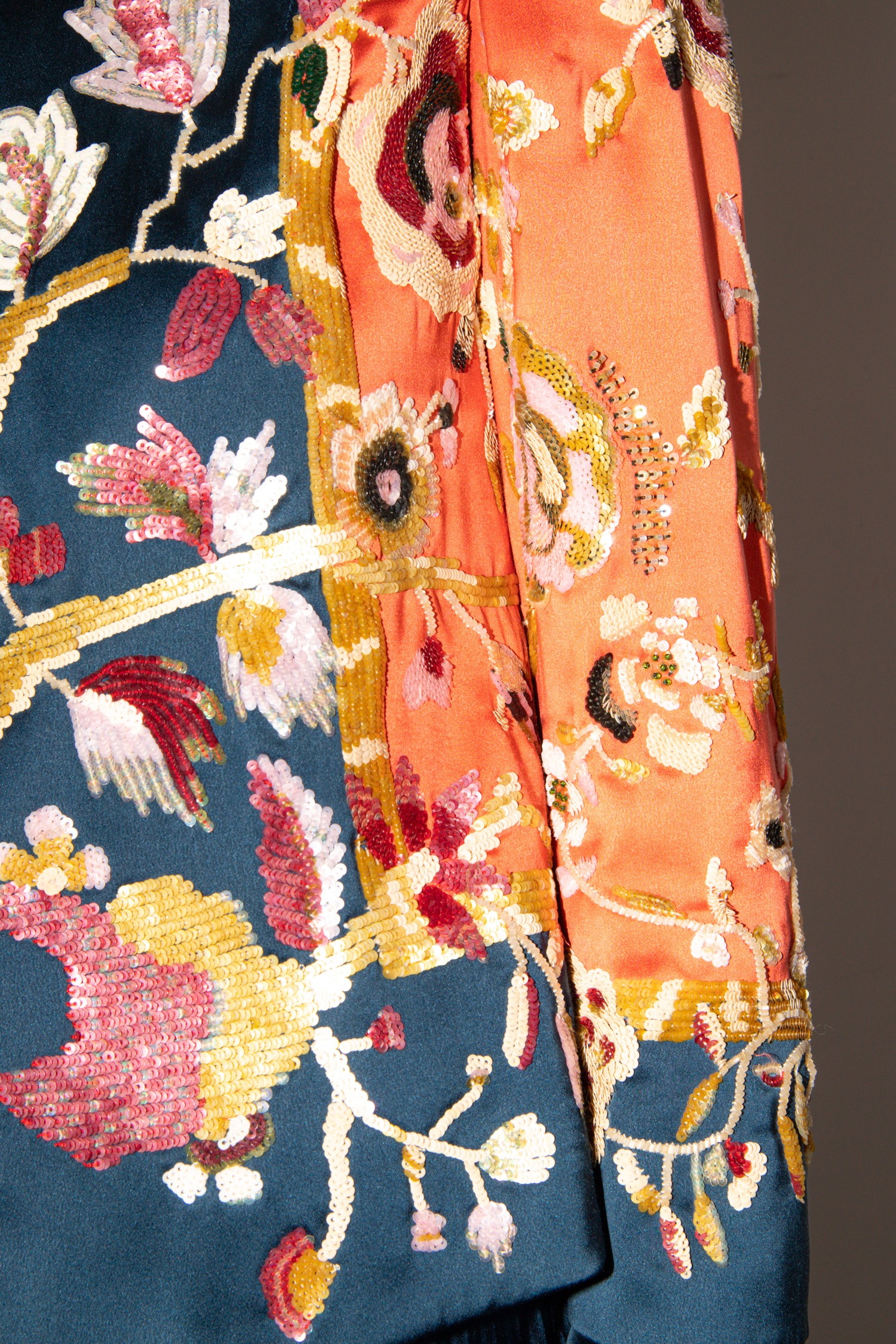 - Mehrfarbige, florale Pailletten- und Perlenstickerei