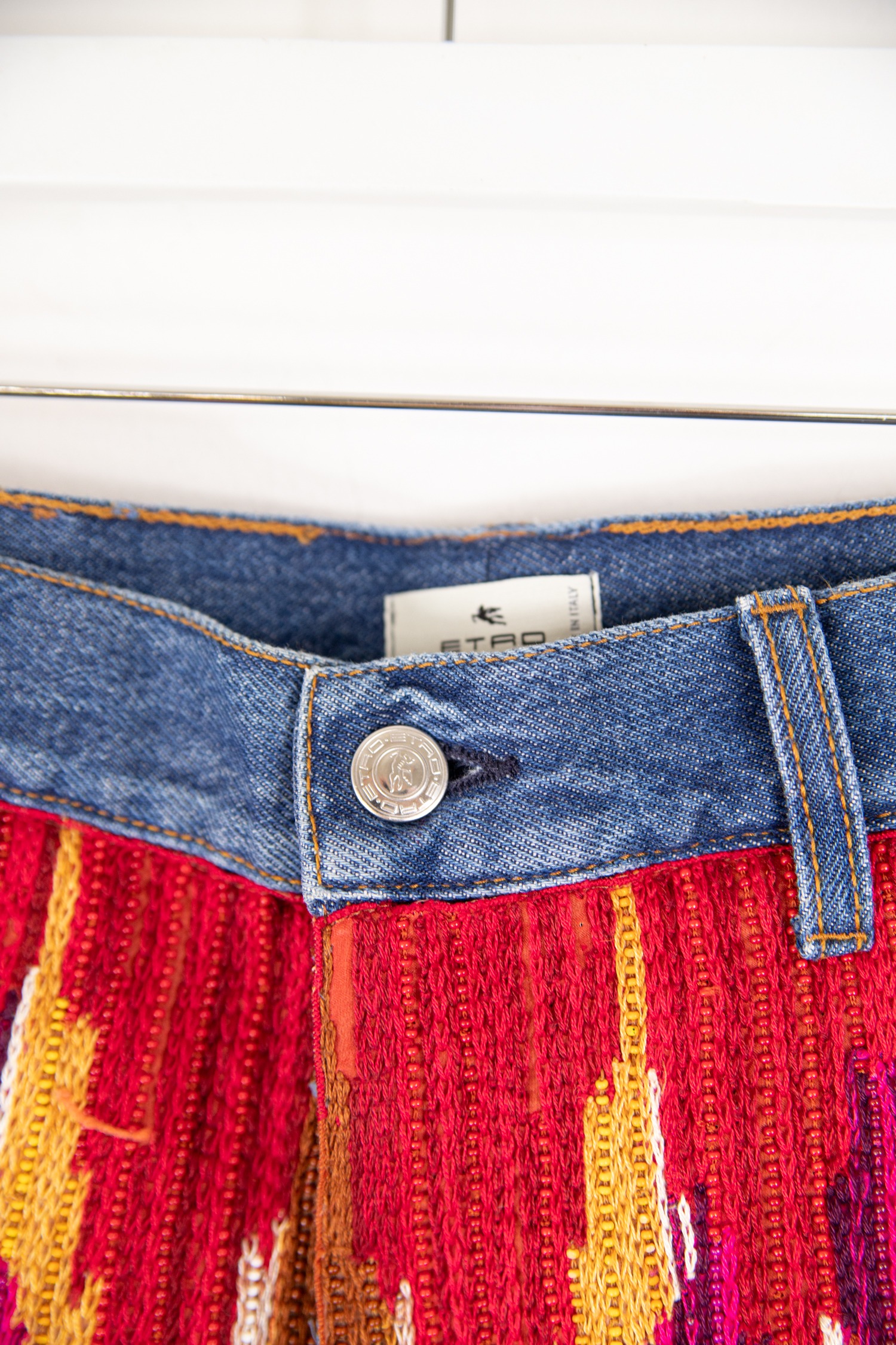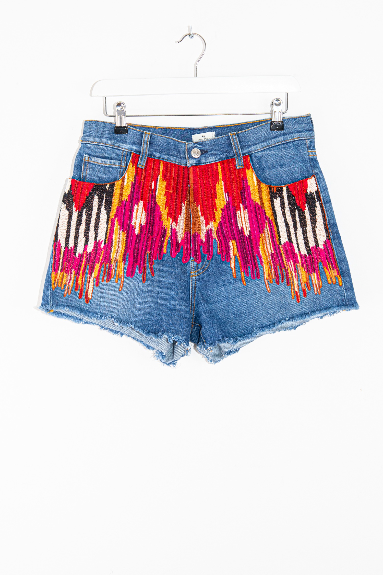 Etro Jeansshorts mit Stickerei und Perlen in Blau und Bunt