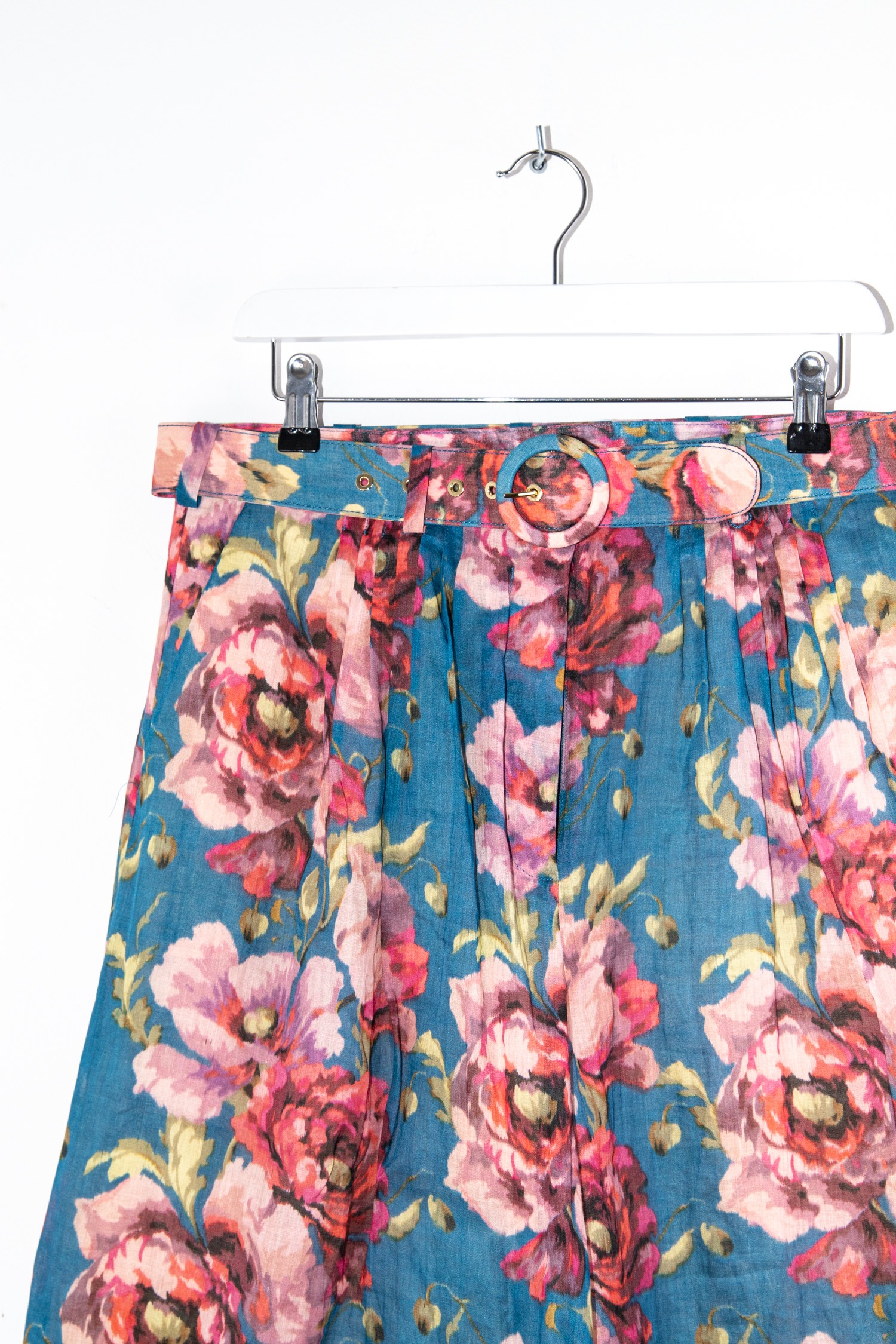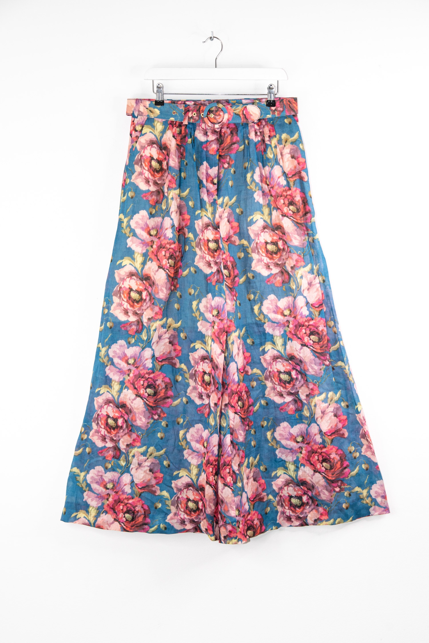 Zimmermann Hose mit Gürtel und Blumenmuster in Petrol