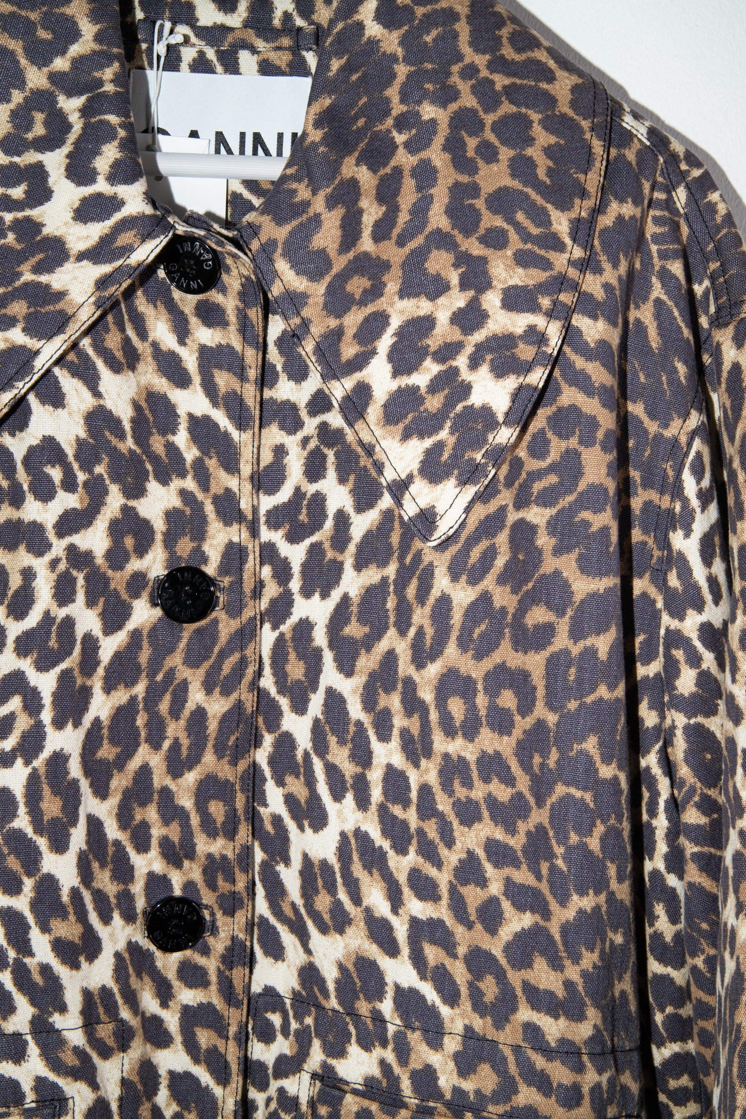 Ganni Oversized Mantel mit Leopardenmuster in Beige und Schwarz