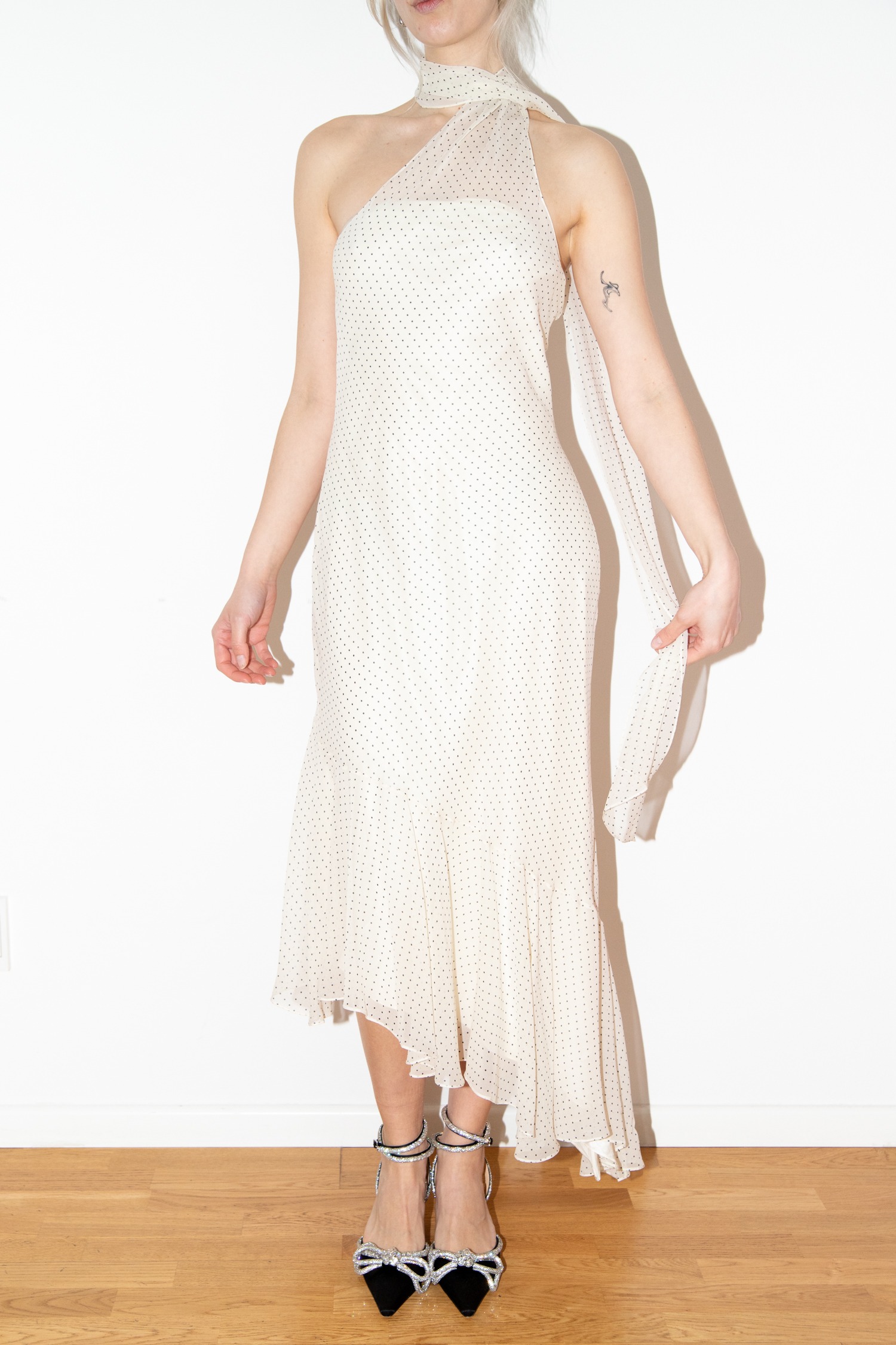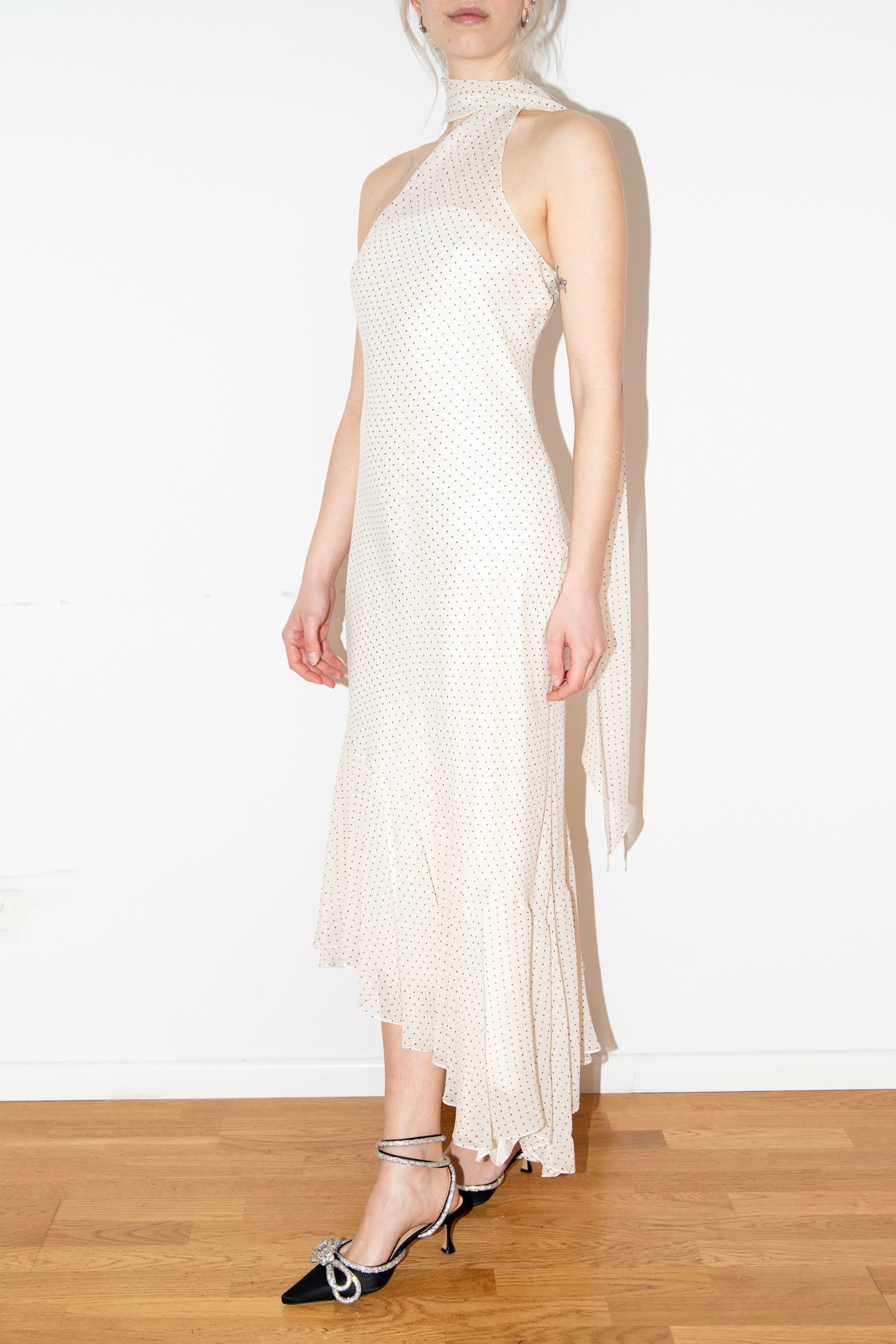Ralph Lauren Halterneck-Maxikleid mit Punkten in Ecru