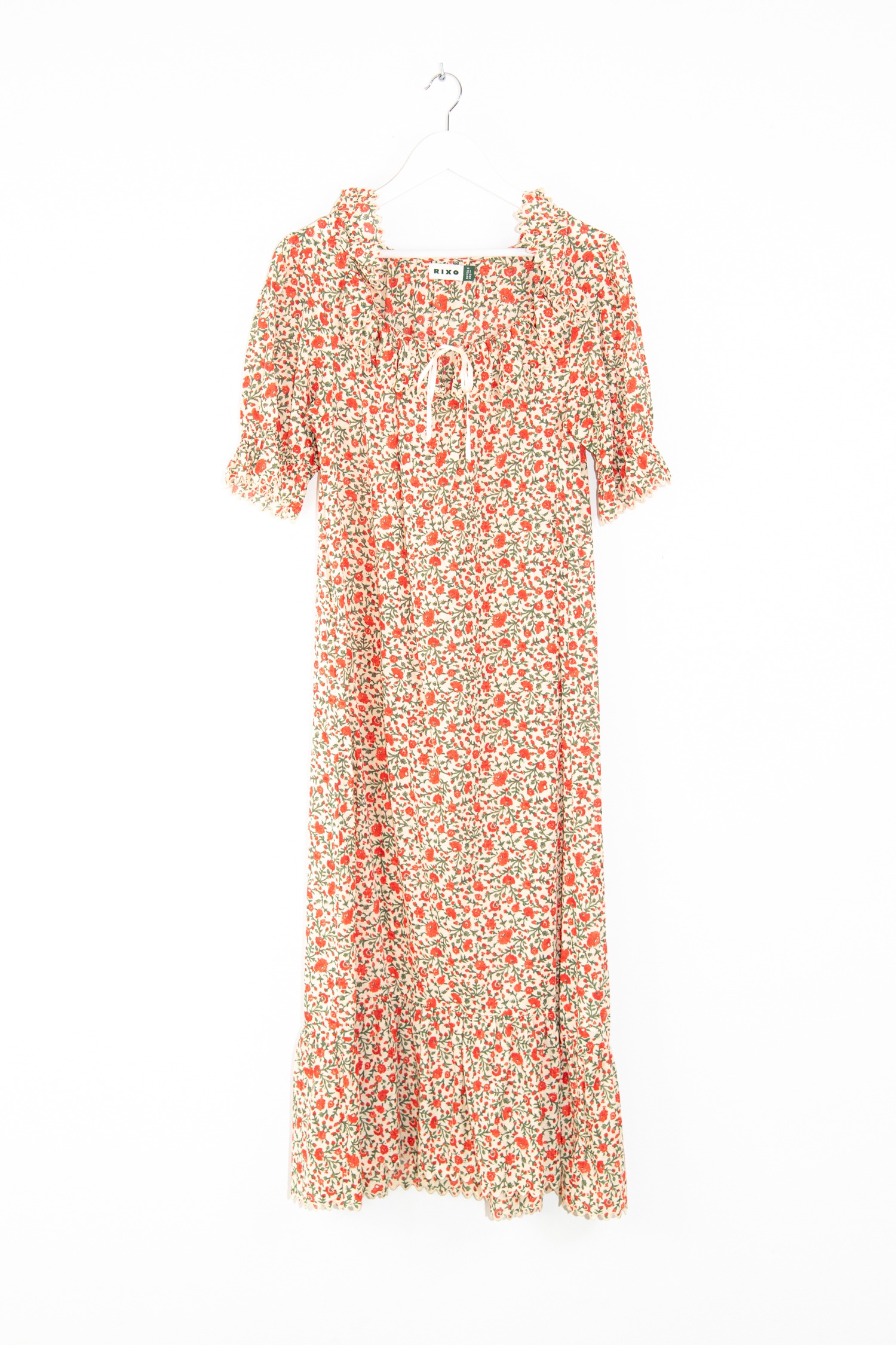 Rixo „Aprilia“ Maxikleid in Natur, Rot und Khaki