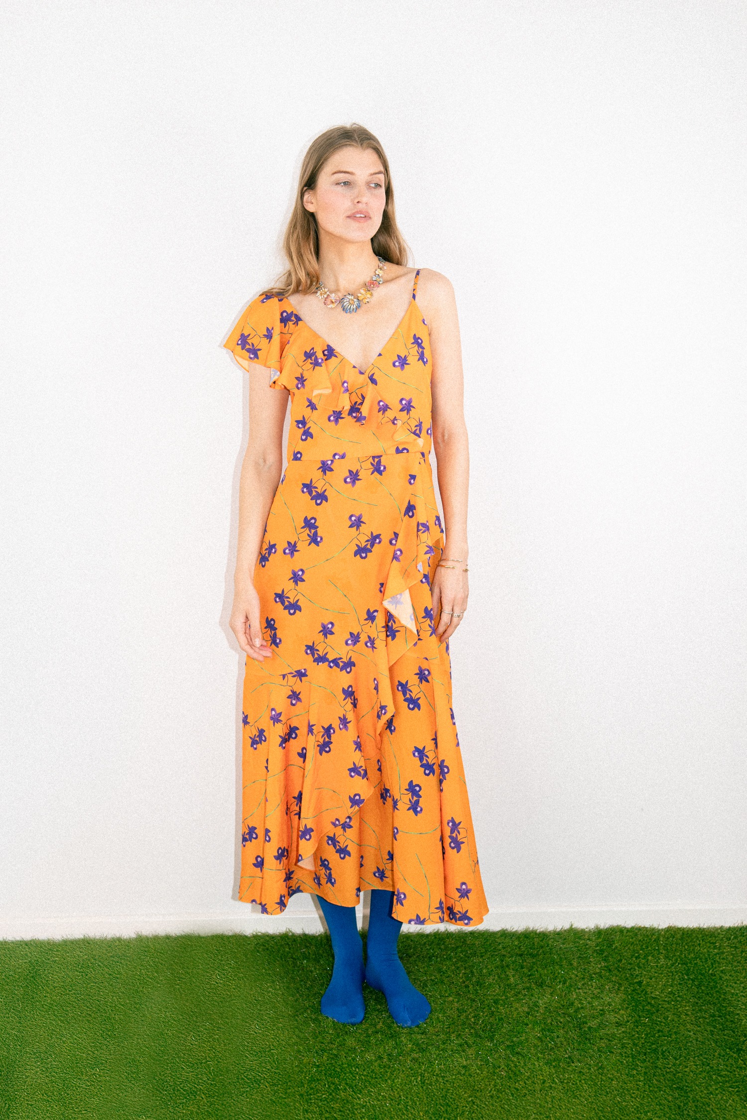 Borgo de Nor Midikleid mit Blumenmuster in Orange