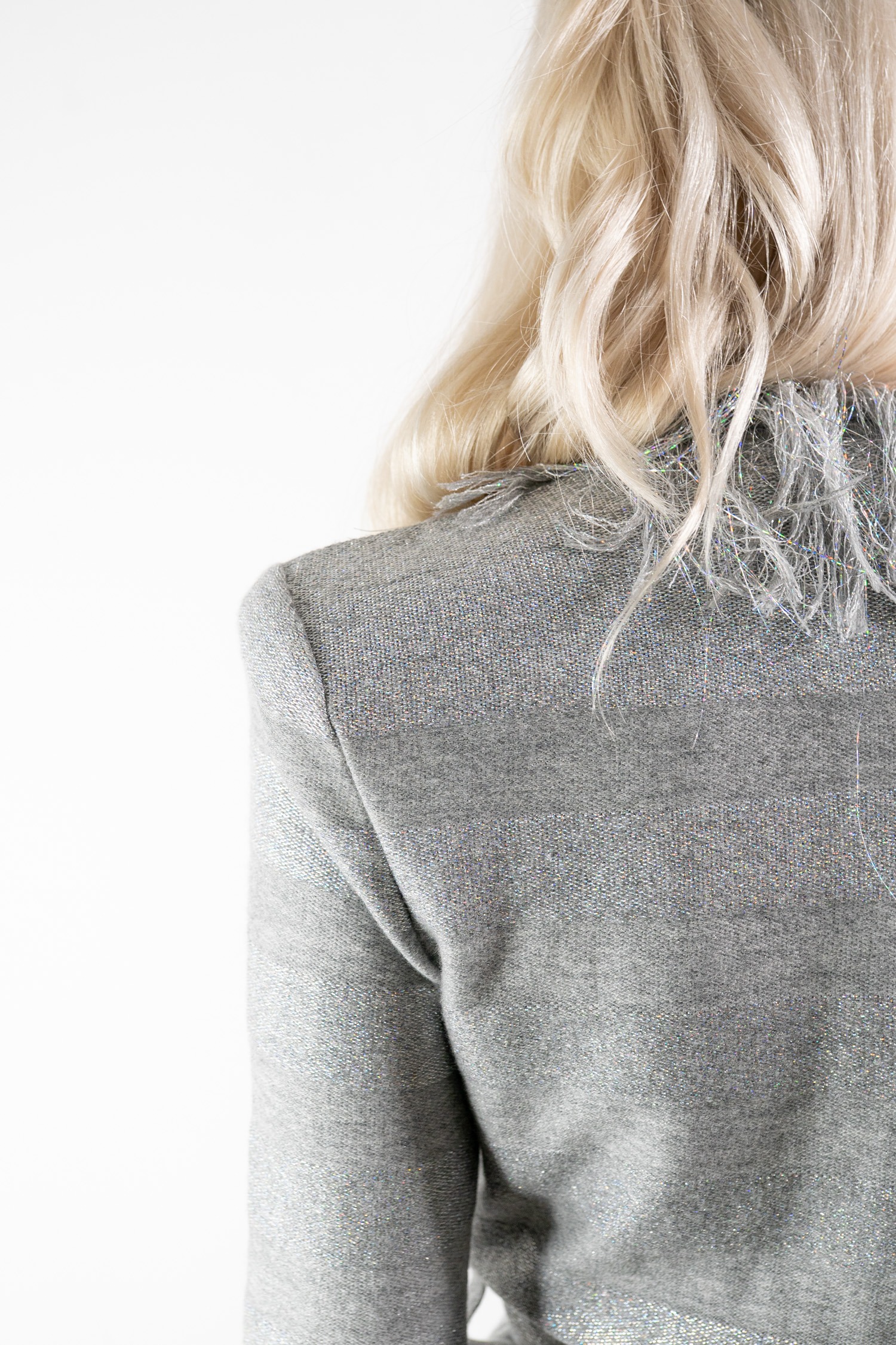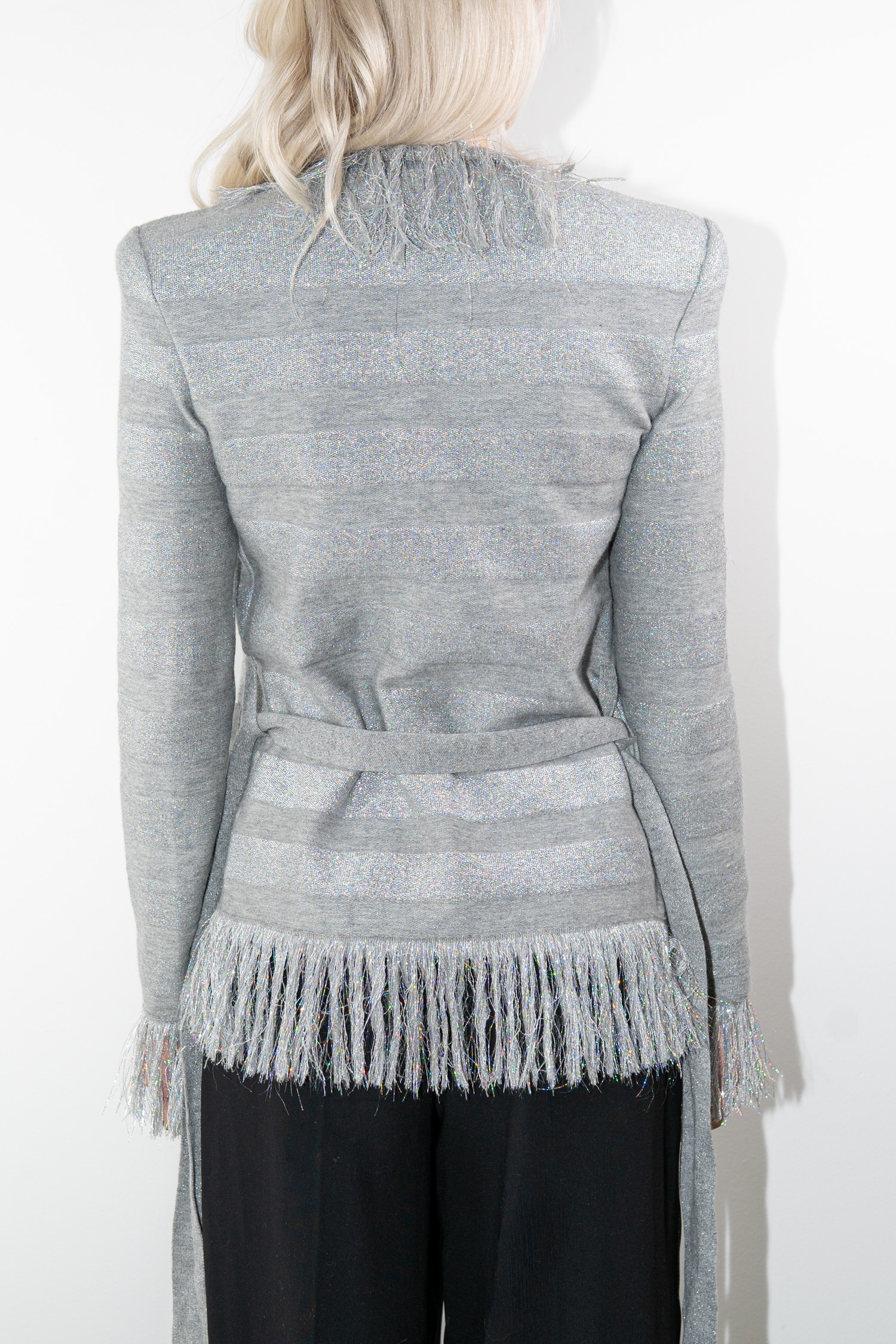 - Dekorative Fransen an Ausschnitt, Ärmelabschluss und Saum