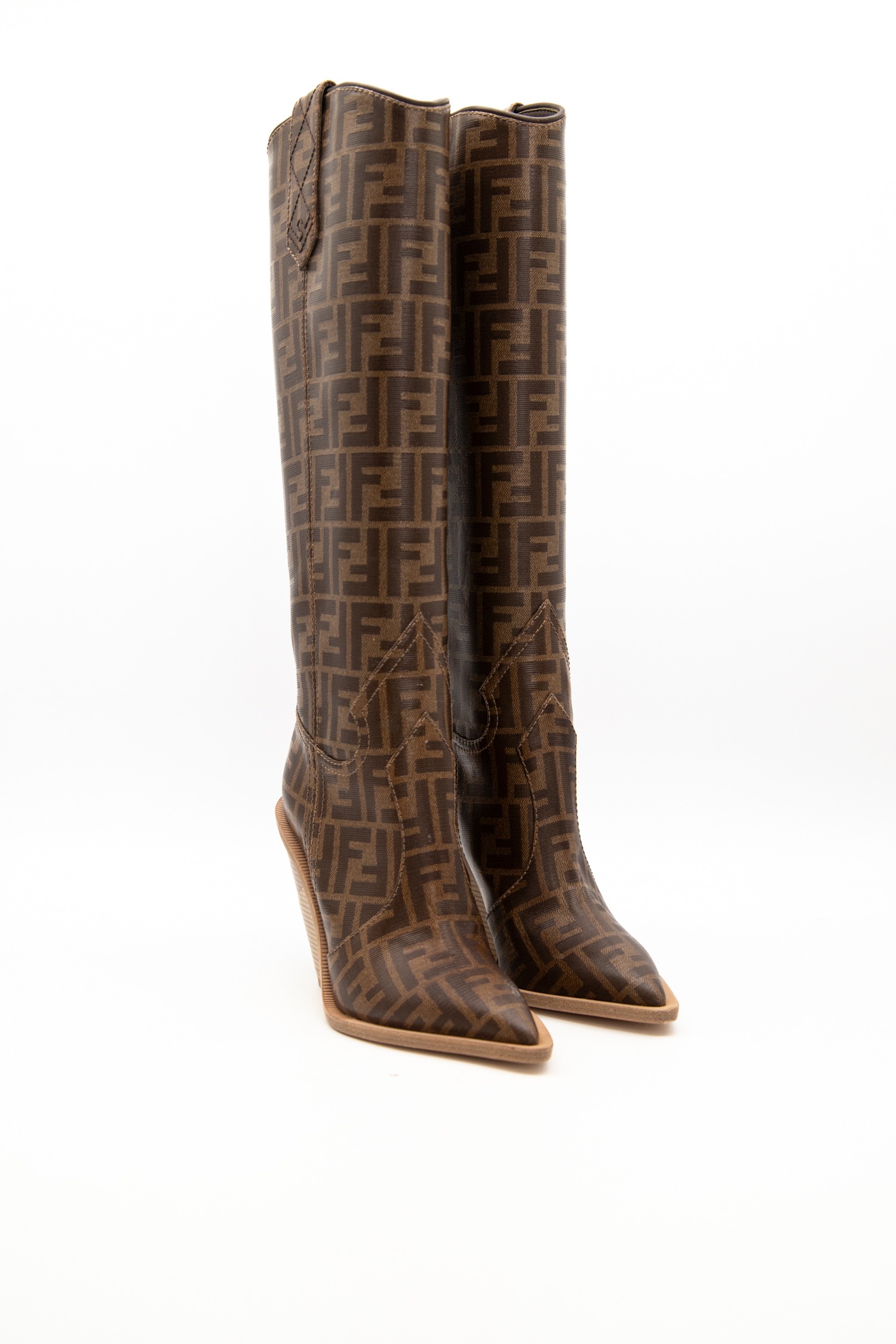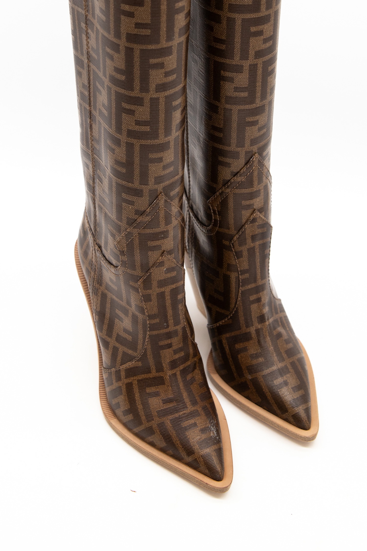 • Fendi "FF-Logo" Cowboy Boots mit Monogramm in Braun